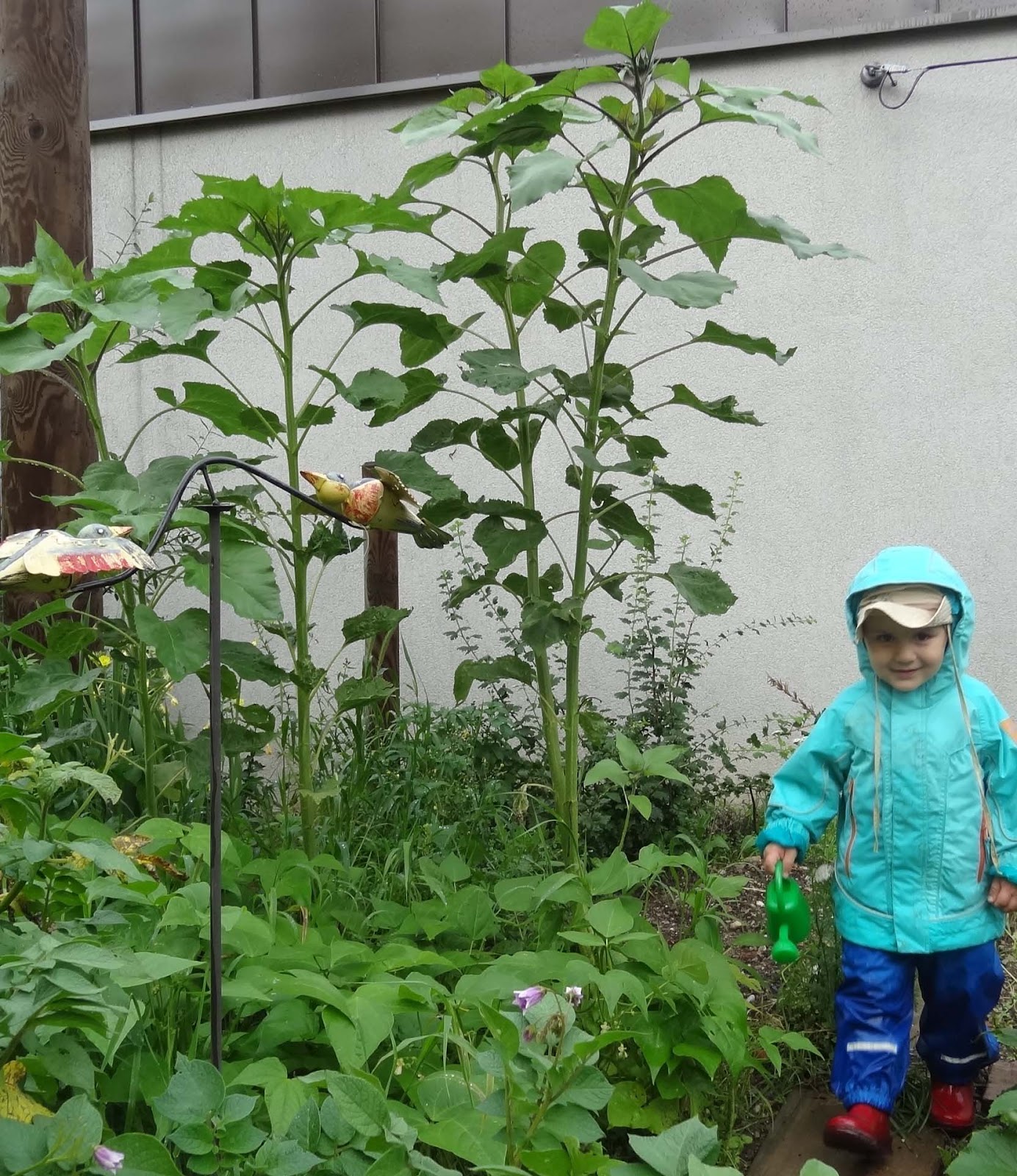 die Sonnenblumen sind schon über 2 m hoch!