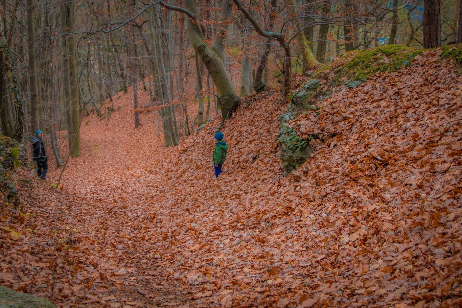 Hier haben sich, von Wind geschützt, regelrechte Laubberge angesammelt…