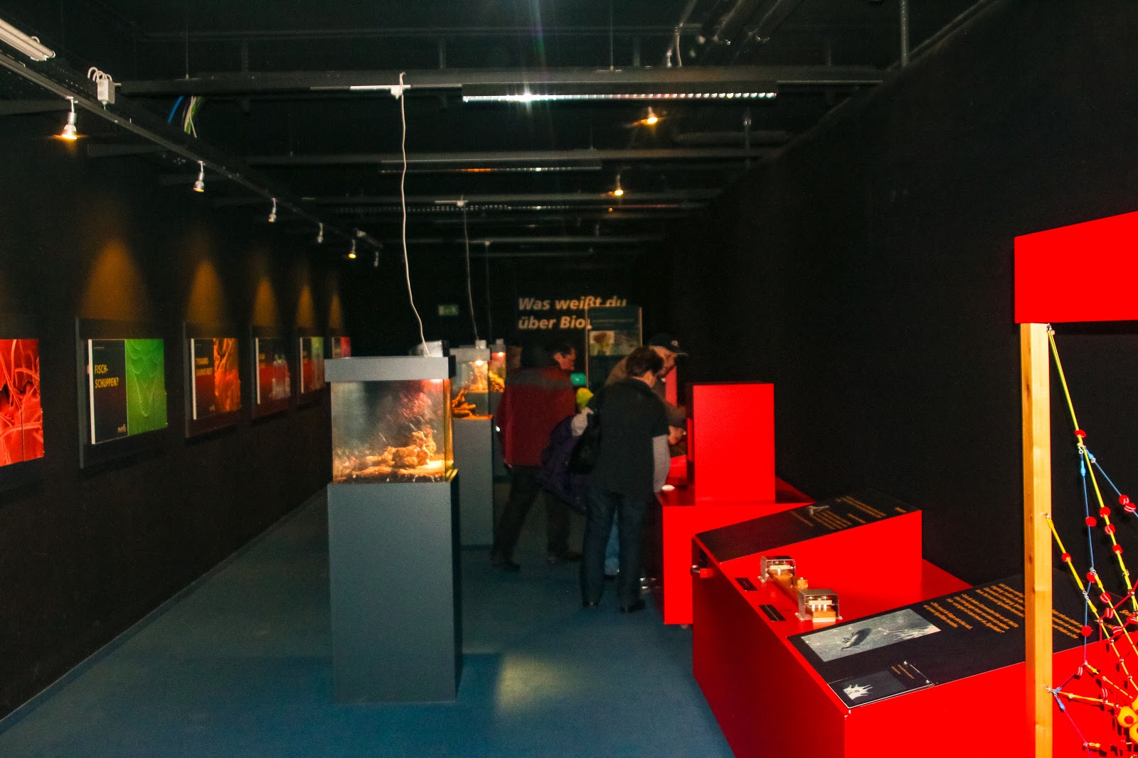 befinden sich auch einige Aquarien und Terrarien mit Tieren.