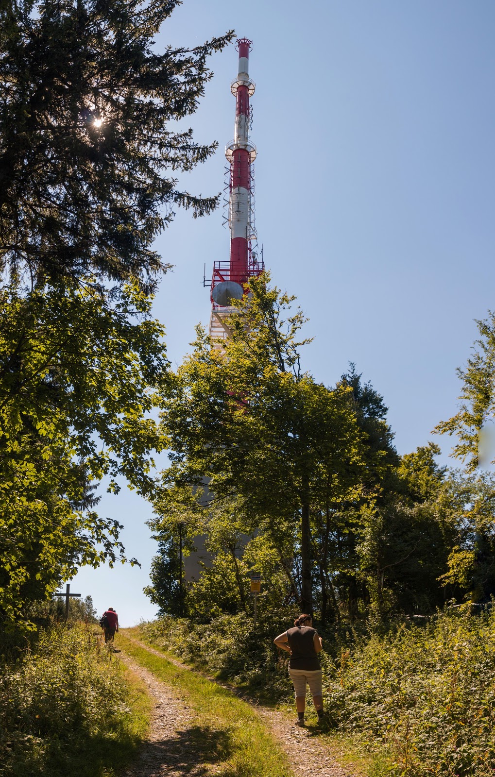 Direkt neben dem Gipfel befindet sich ein Sendemast.