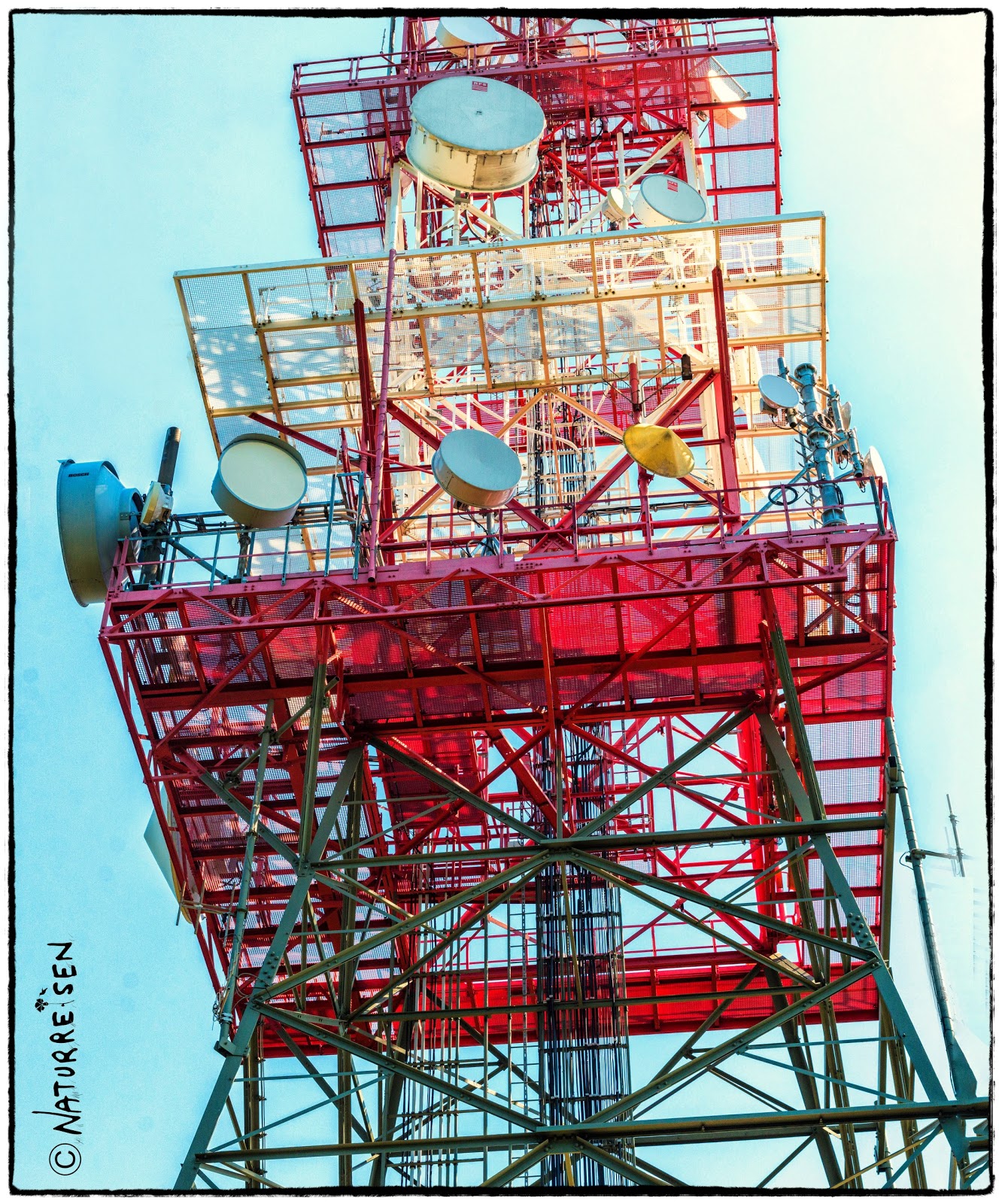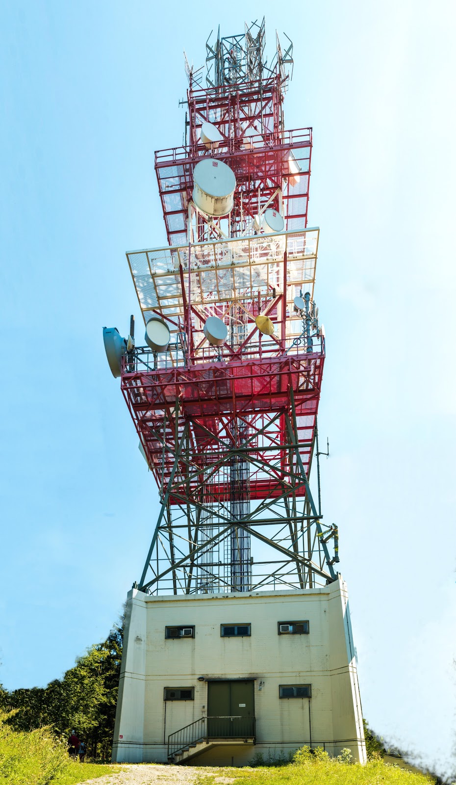 Einge hundert Meter vom Gipfel und Sendemast entfernt befindet sich noch ein Sendeturm mit unzähligen Empfangs- und Sendeanlagen…