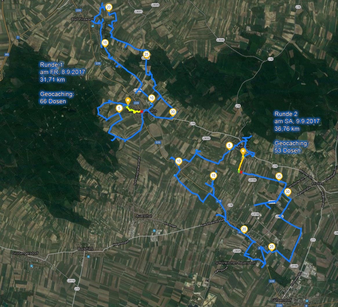 Ein Geocaching-Wochenende (Radfahren, Punkte suchen und Fotografieren) stand schon länger am Plan. Jetzt war es soweit! Am 8. September nach der Arbeit ging es mit dem Auto ins Marchfeld und um ca 16 Uhr bin ich mit dem Rad von Groß Schweinbarth weggefahren…