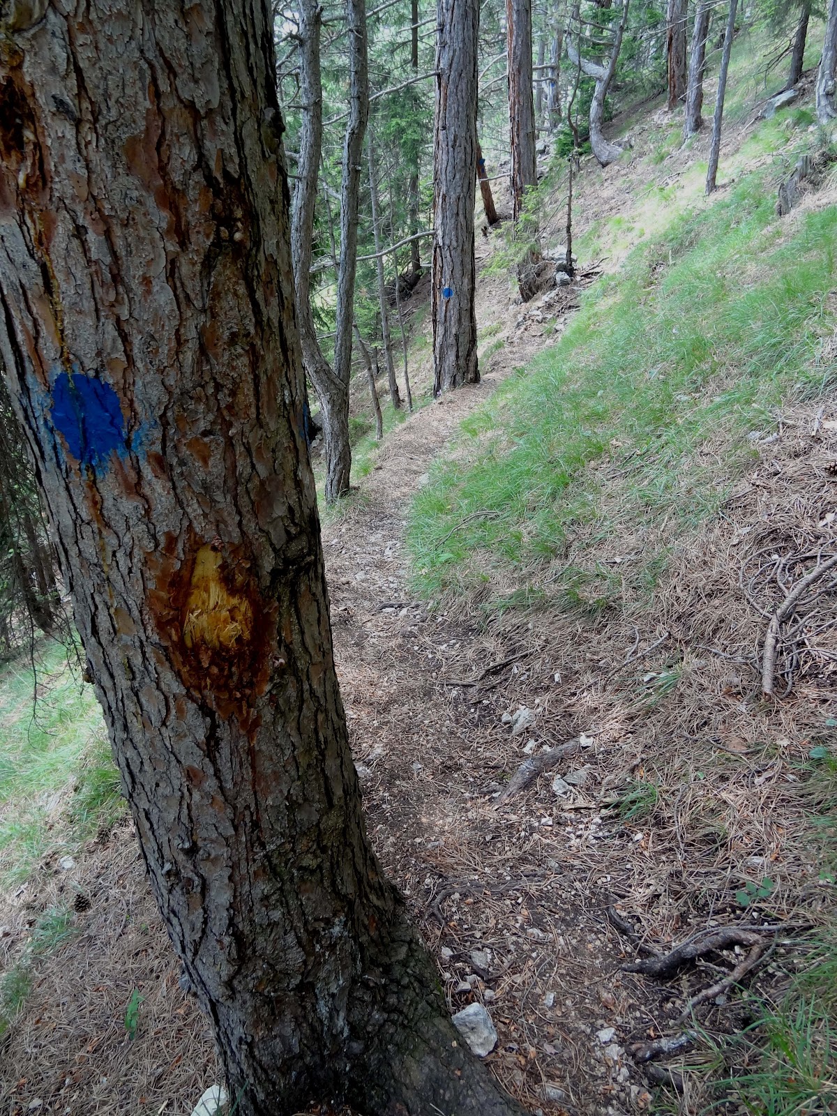 Ein kleines Stück nach dem Hubertushaus in nördlicher Richtung gibt es wieder zahlreiche interessante Steige, von denen ich die meisten schon gegangen bin: Holzknechtsteig, Steiererspur, etc. Ein Steig ist aber relativ unbekannt: der Zweitorsteig. Ich gehe diesen Weg ein kleines Stück bergab und wieder bergauf weil er mir ein wenig zu steil für den Abstieg ist. (Steig #6)