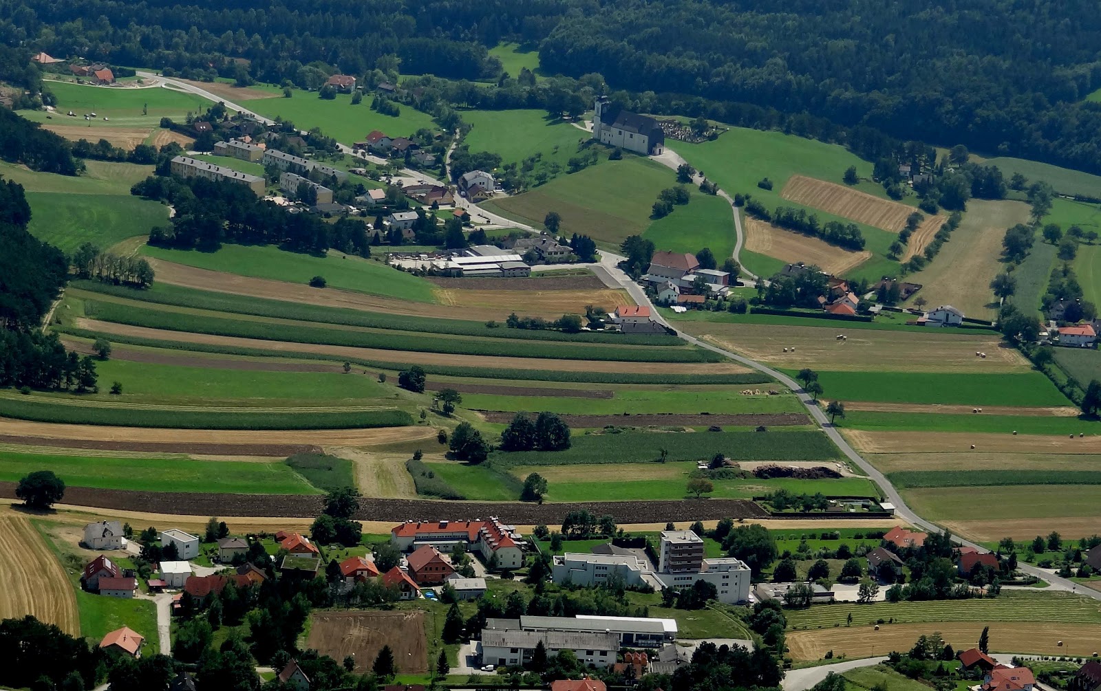 Oben in Bildmitte die Kirche am Kirchenhügel
