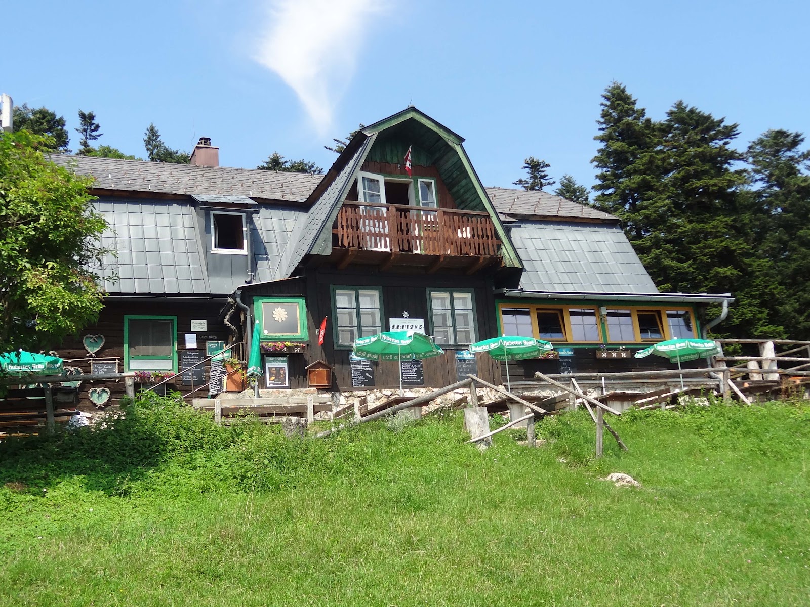 Nach dem ich den Wagnersteig runter und wieder rauf marschiert bin, wandere ich ca einen dreiviertel Kilometer oben bis zur nächsten Hütte, dem Hubertushaus.